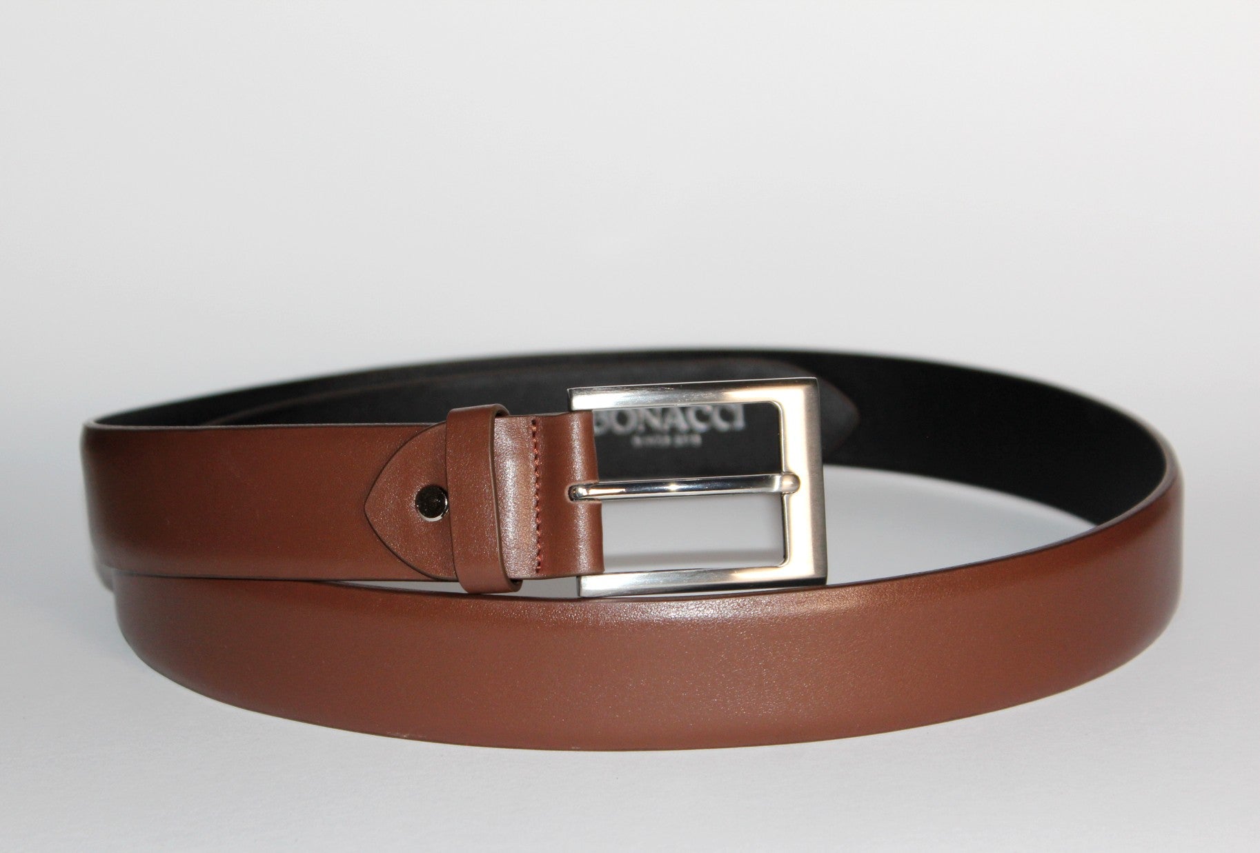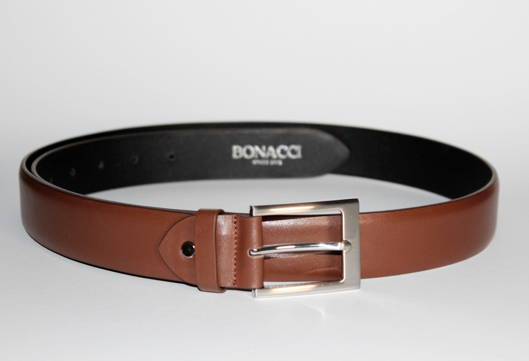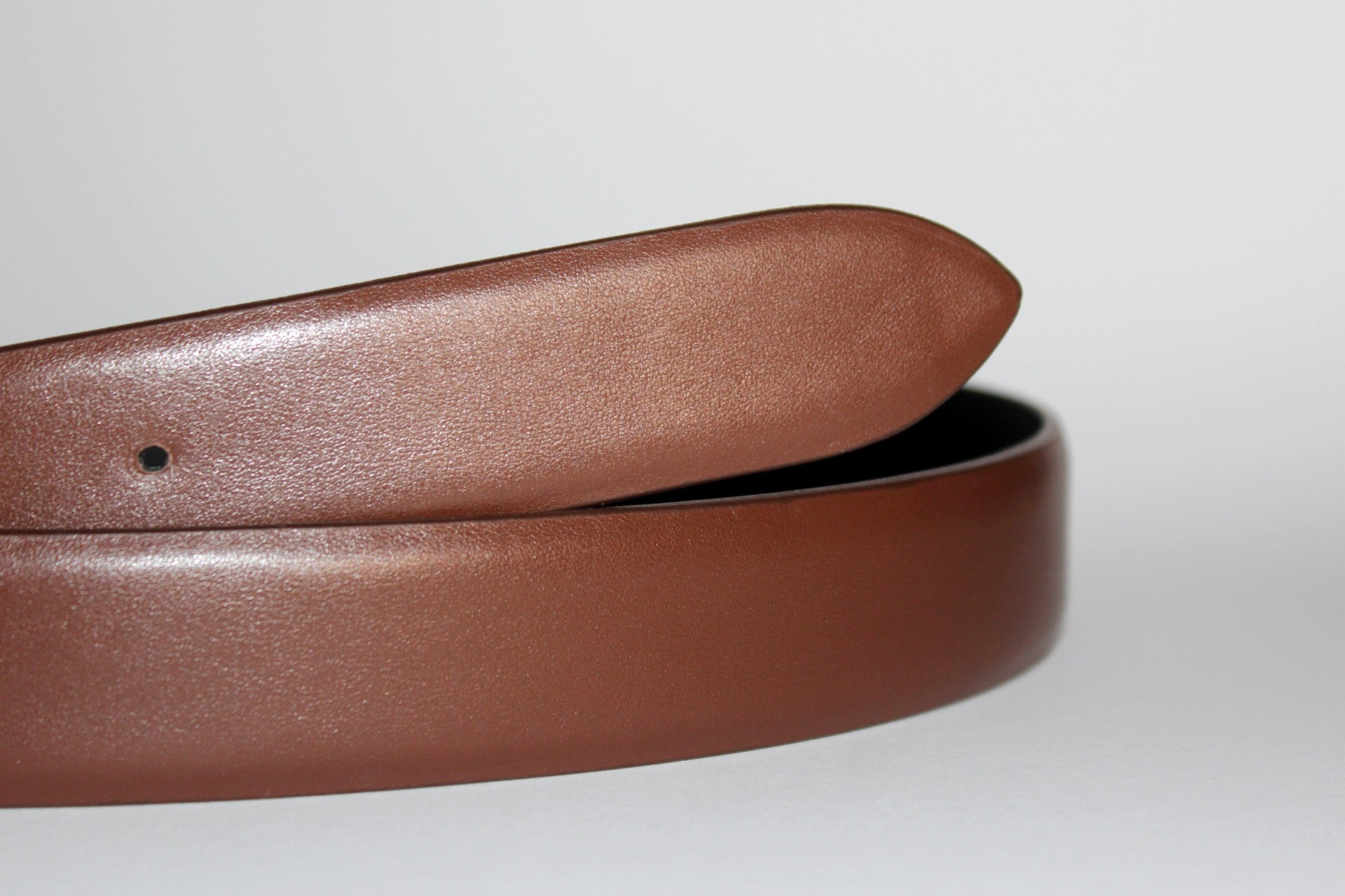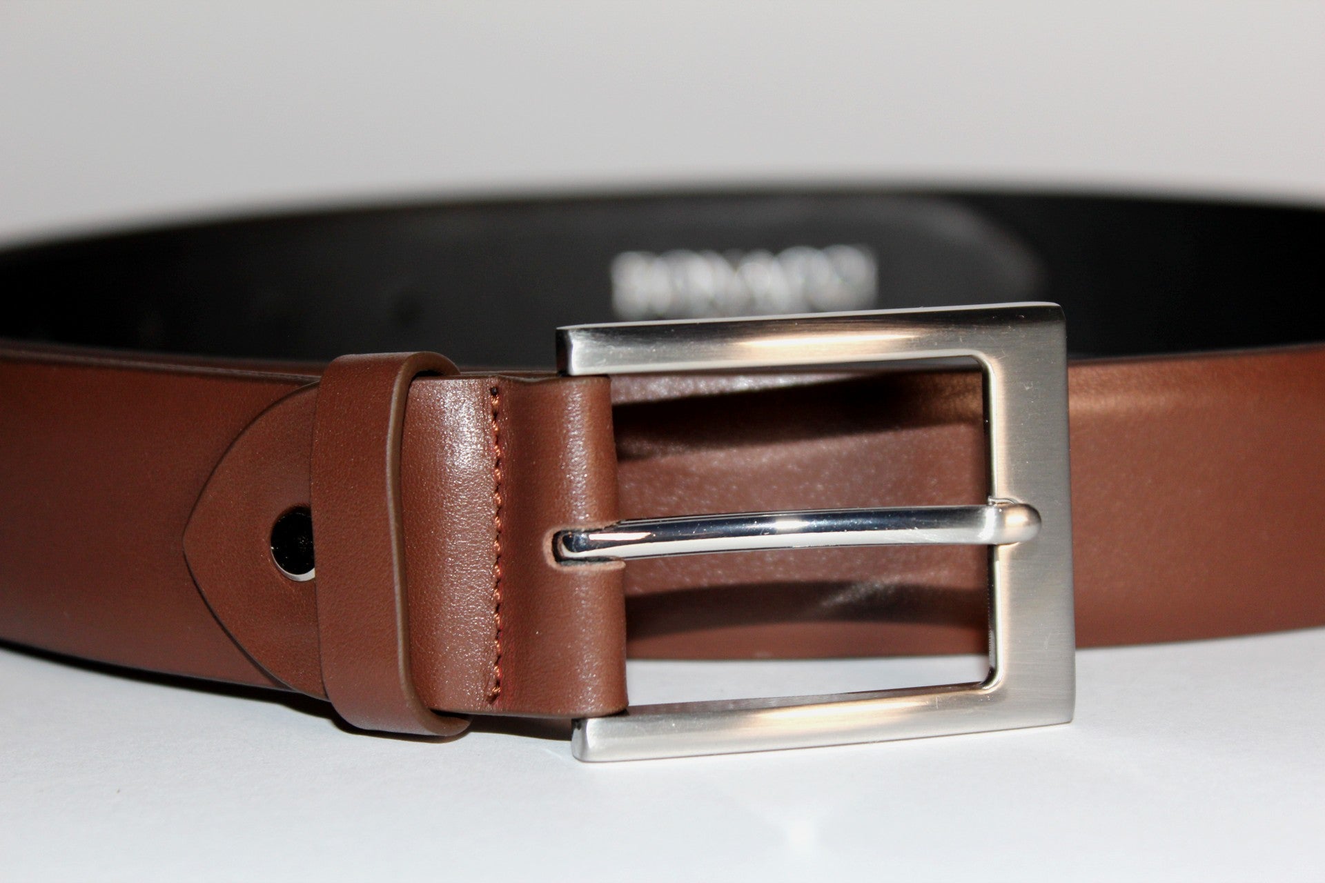 Opasok z hovädzej kože v bledohnedom odtieni so šírkou 35 mm. Povrch kože má hladkú ípravu s jemným odleskom. Podšívka z hovädzej kože s absorpčnými vlastnosťami zabezpečuje komfort pri nosení. Zakončený polyesterovou niťou v tónovej farbe, bez viditeľného stehu. Pracka z nehrdzavejúcej ocele s lesklou povrchovou úpravou.