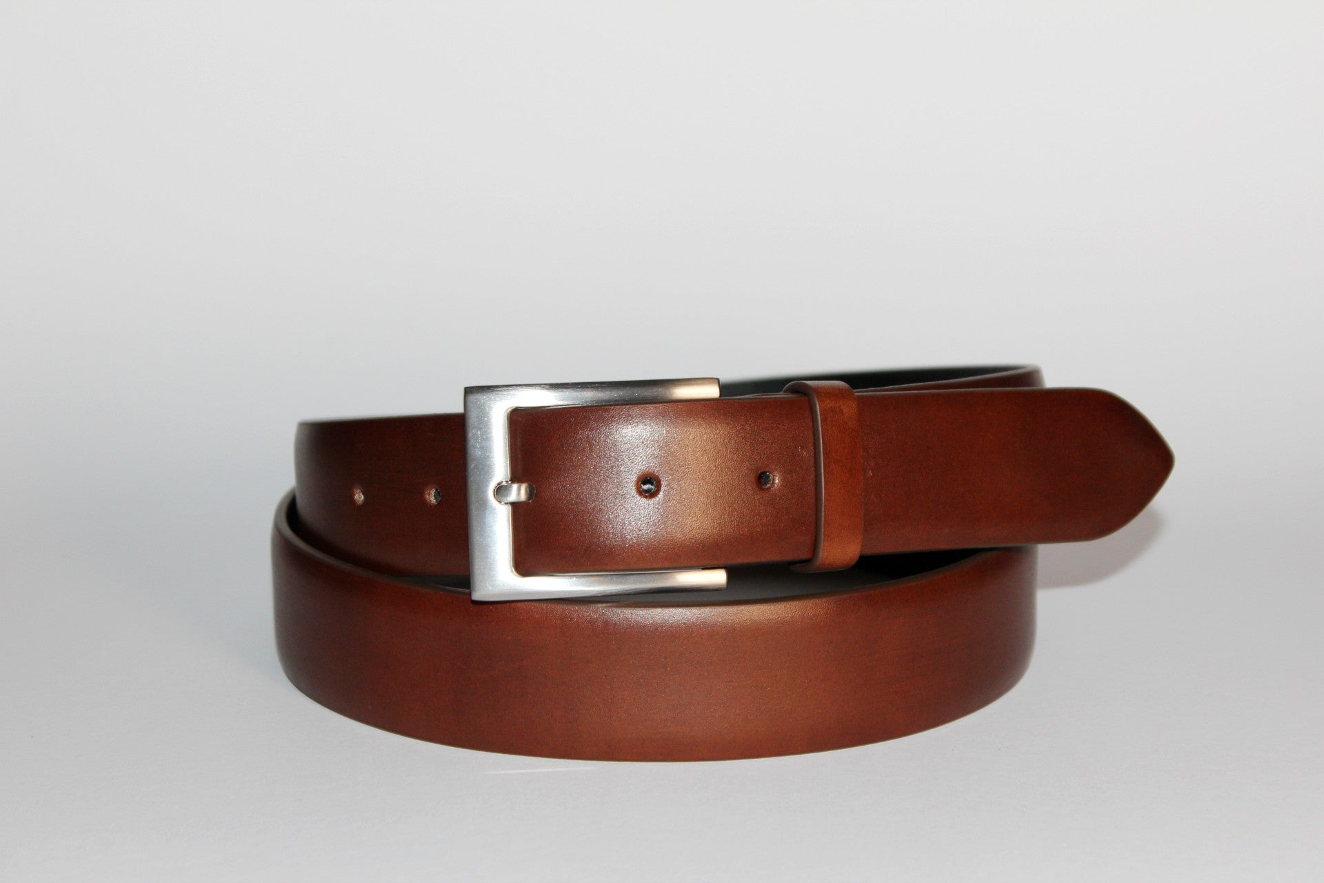 Ručne maľovaný opasok z hovädzej kože v hnedom odtieni, so šírkou 35 mm. Povrchová úprava zvýrazňuje prirodzenú štruktúru kože a každému kusu dodáva jedinečný charakter. Podšívka z teľacej kože s absorpčnými vlastnosťami pre komfort pri nosení. Zložený bez viditeľného stehu, zakončený polyesterovou niťou v tónovej farbe. Pracka z nehrdzavejúcej ocele s brúseným povrchom.